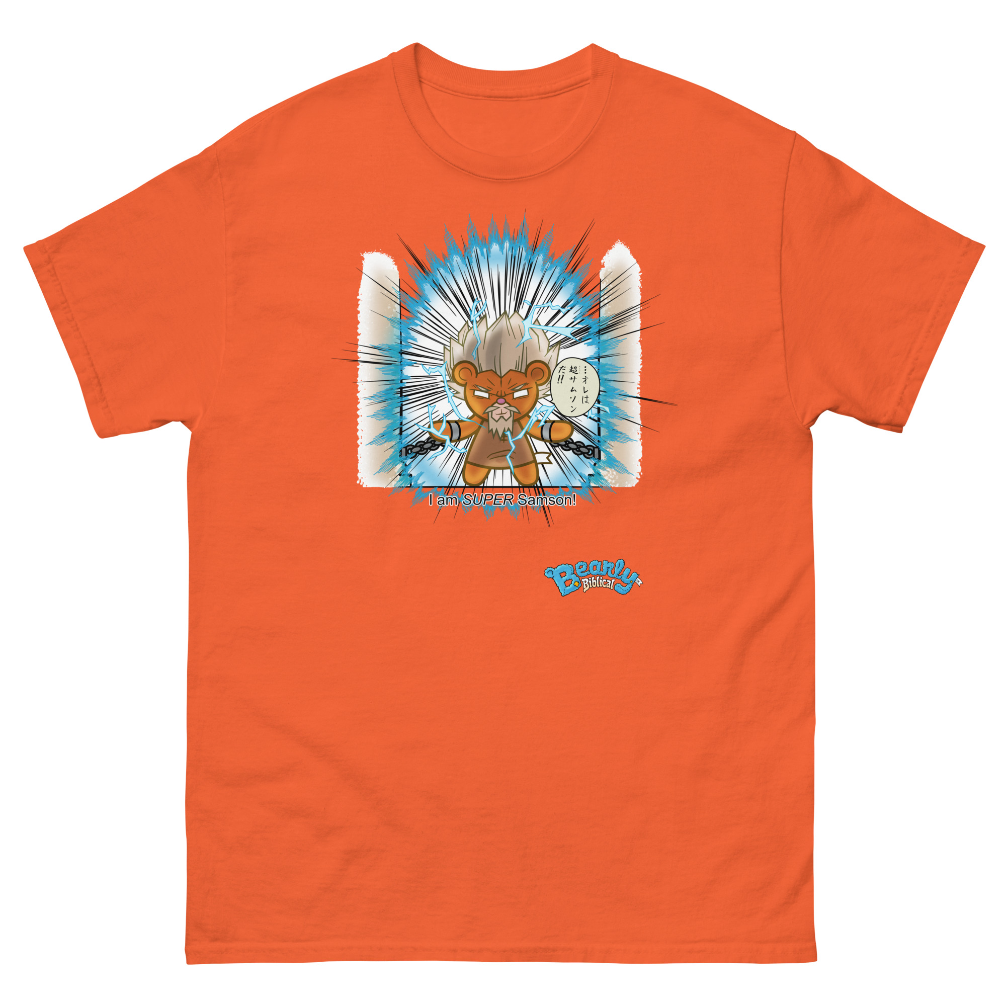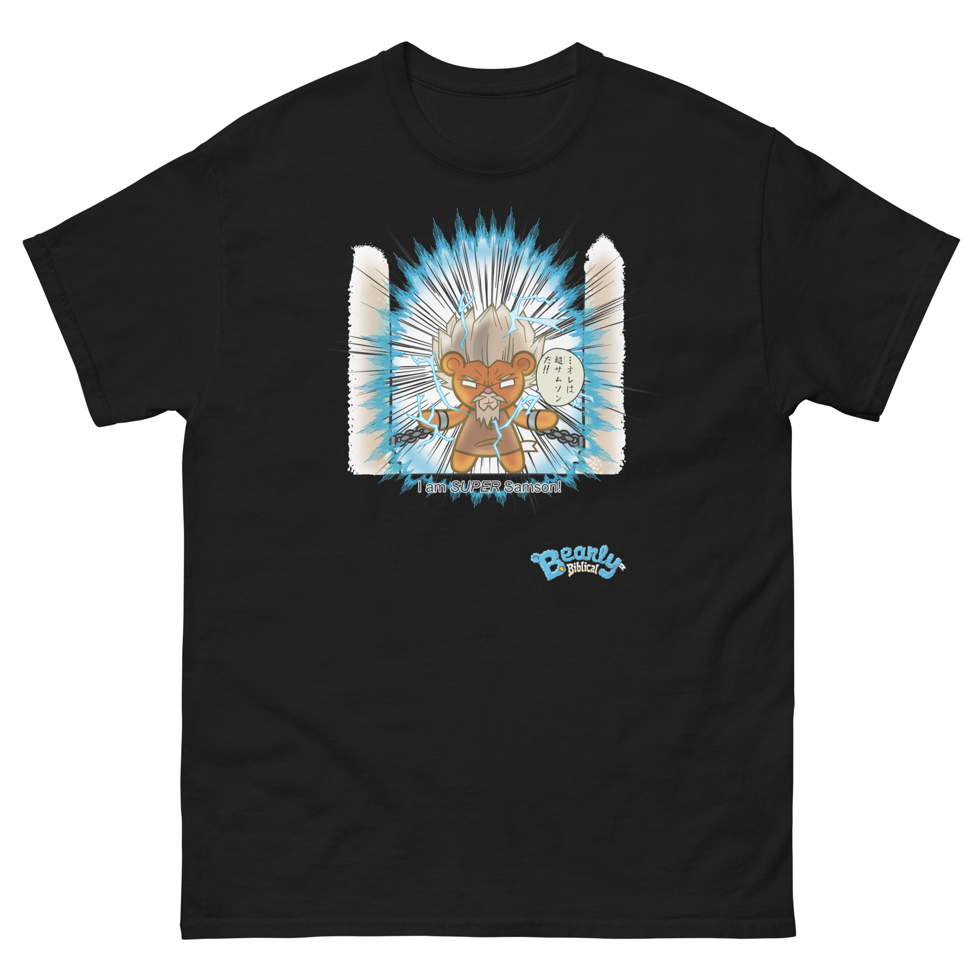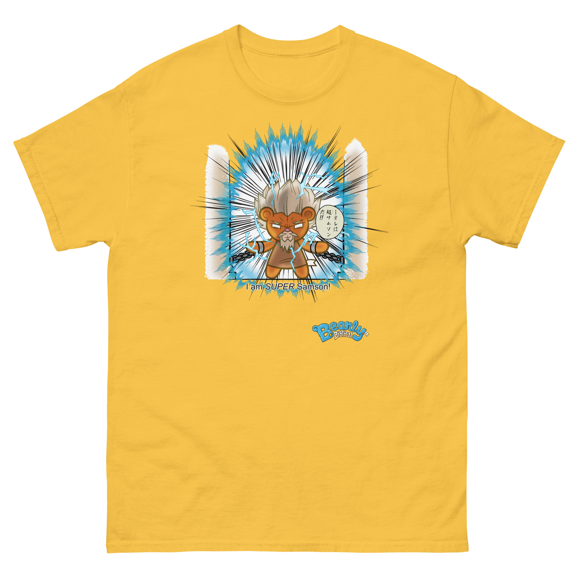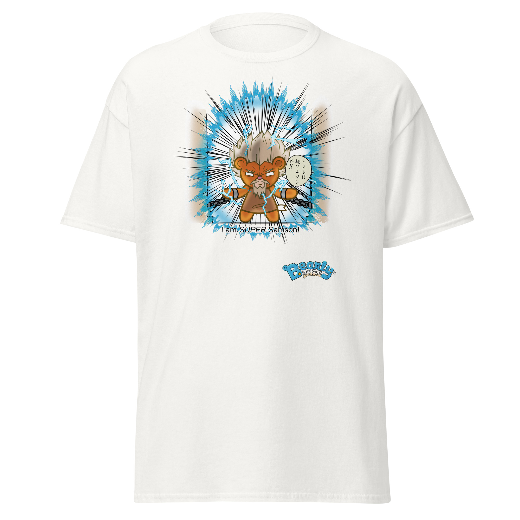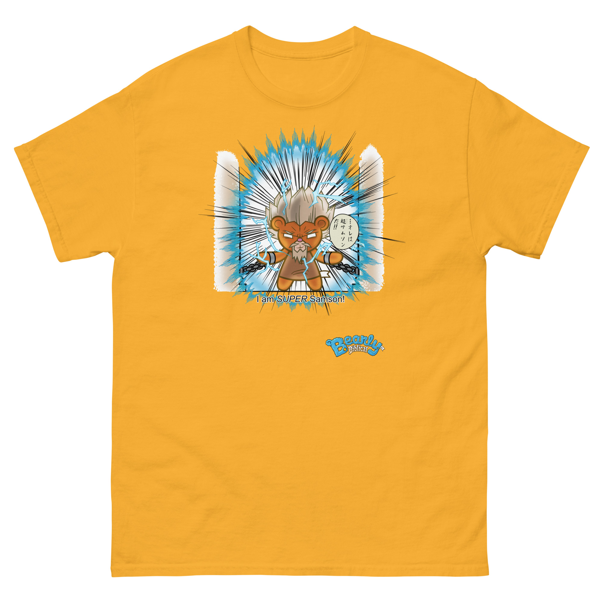 Premium T-shirt of the Bearly Biblical Bible hero Samson, posed in the style of a classic anime super, ready to pull down the pillars of the Philistine Temple as in the book of Judges 16. Complete with English subtitles for those who prefer subbed over dubbed. Also available in Manga version.